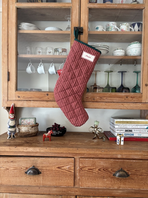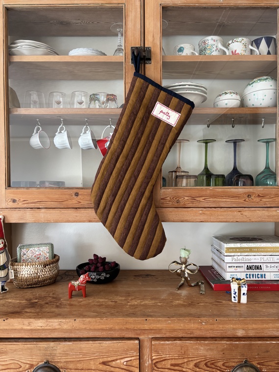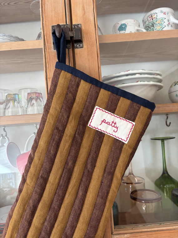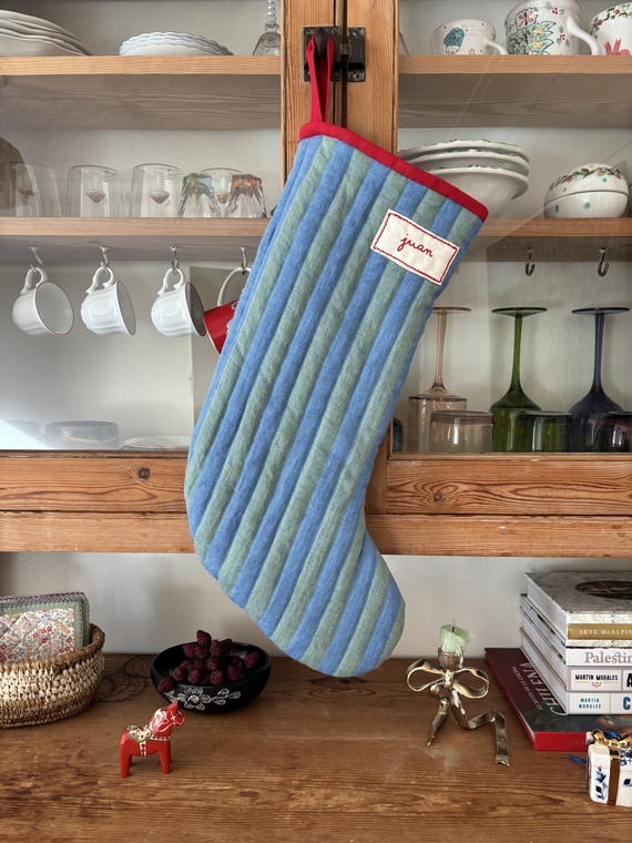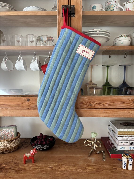 New collection of Christmas stockings for 2025. Each piece is crafted from beautiful stone-washed linen, quilted for texture, and upon request, they can be hand-embroidered personalised. Available in three colours.