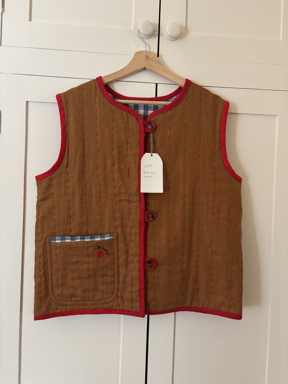 Hand knitted tank top vest made of 100 % wool from Yorkshire.