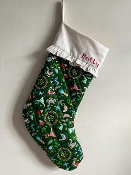These lovely stockings are handcrafted from Liberty Christmas fabric and a scalloped cotton cuff finished with a hand blanket stitch surrounding the edges.