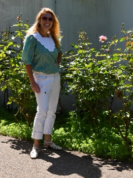 A classic shape this lovely top buttoned with a scalloped collar made 100% cotton with main body in Tana Lawn Strawberry and cream print in red.